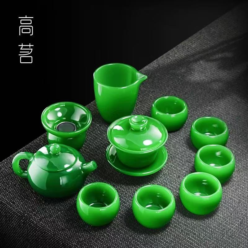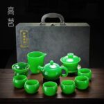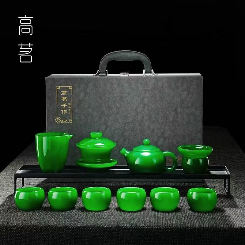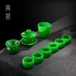 Jade glass Kung Fu tea set high-end exquisite high-grade imperial green jade tea cup gift box light luxury